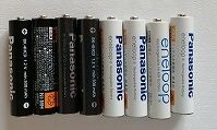FIT-20は単4乾電池6本で稼働しますが、ハロゲンランプへの電源供給の都合によりニッケル水素充電池のみが使用可能です。ハロゲンランプは電力消費が激しいので、ニッケル水素充電池つまりエネループのシリーズの中で「エネループPro」を強く推奨します。上記写真のうち、白色の電池が通常のエネループ、黒色の電池が「エネループPro」です。